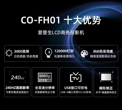 愛普生(EPSON)CO-FH01 投影儀 投影機 投影機辦公 培訓辦公投影機(3000流明 1080P 240hz刷新率)